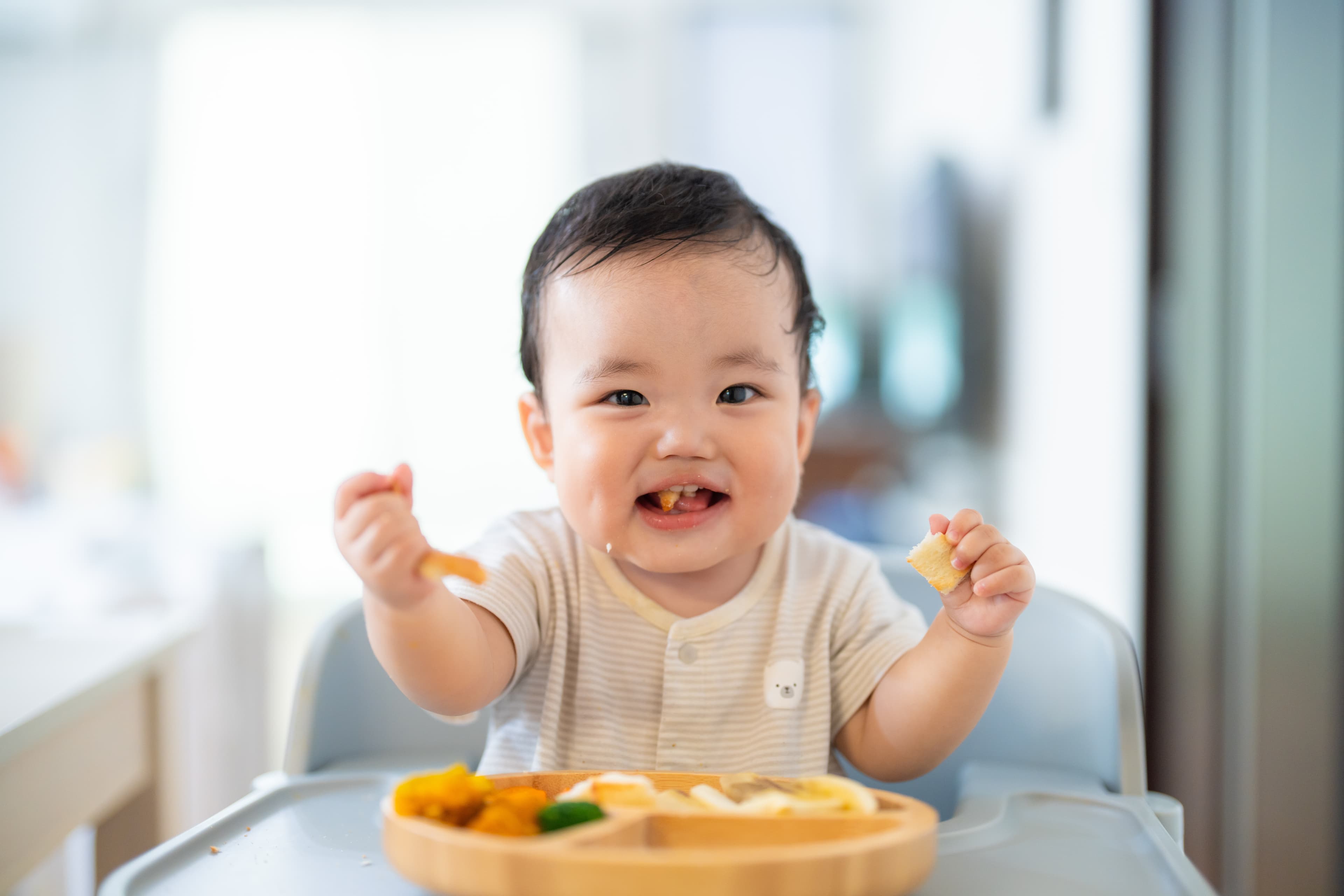 赤ちゃんが自分で食べ物をつかむことで、自己主張や自己決定の経験をすることができます。これは食事の選好や食べるペースを自分でコントロールする能力を養ううえで重要です。