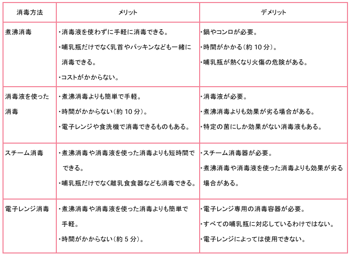 消毒方法を選ぶ際のポイントをまとめました。下記の表も参考に、自分に合った消毒方法を選びましょう。
