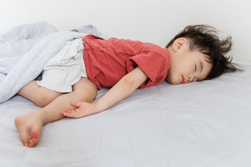 子どもを見ていると、無駄だと思えるほどよく動き回っています。走り回ったり、その場でグルグル回っていたり、踊っていたり。子どもは普段の生活の中でも、大人からは想像できないほどの体力を消耗しています。そして、本人も気付かないうちにとても疲れをため込んでいます。たくさん遊んだ日は、よく夜に熱を出したりしますね。睡眠は、疲れた身体をリフレッシュし、エネルギーを回復させるための休息です。この休息が体の成長と発育に必要なのです。