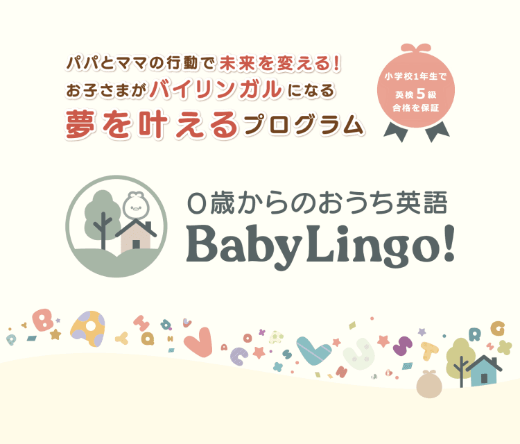 BabyLingo!の取り組みを続けていただくことで、小学校に入学する頃には英語のネイティブスピーカーと、自然な日常会話ができるようになることをお約束します。