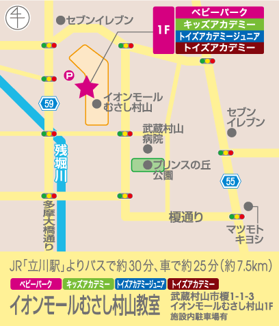 | 〒208-0022 東京都武蔵村山市榎1-1-3 イオンモールむさし村山 1F |