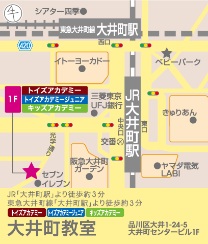 トイズアカデミー大井町教室(トイズアカデミージュニアクラス)は3~6歳向けの幼児教室。JR線・東急大井町線大井町駅から徒歩約3分と通いやすく、子どもが「勉強って楽しい!」と感じながら、思考の土台を築き、自ら学ぶ力を育みます。言語、数量、空間認識の力を育み、6歳までにIQ130以上を目指します。