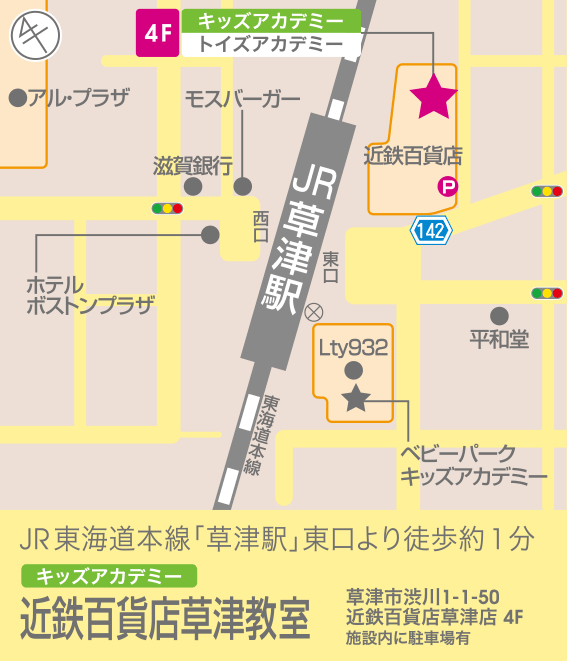 | 〒525-0026 滋賀県草津市渋川1-1-50 近鉄百貨店草津店 4F |