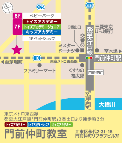 東京メトロ東西線・都営大江戸線 「門前仲町駅」 3番出口 徒歩約3分 |