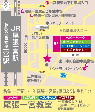 尾張一宮教室は、駅前の「ミルキーウェイビル」5Fにある教室です。