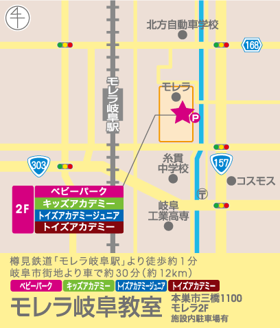 | 〒501-0497 岐阜県本巣市三橋1100 モレラ岐阜 2F |