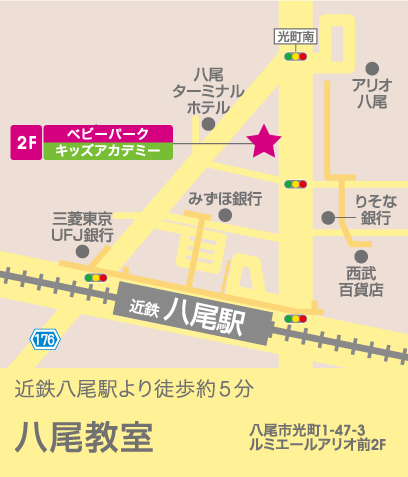 | 〒581-0803 大阪府八尾市光町1-47-3 ルミエールアリオ前 2F |