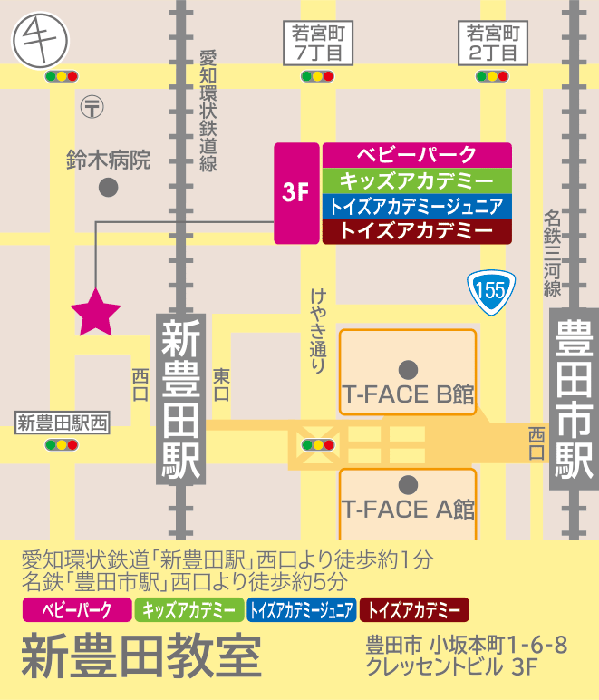 愛知環状鉄道「新豊田駅」西口より徒歩約1分 名鉄「豊田市駅」西口より徒歩約5分 |