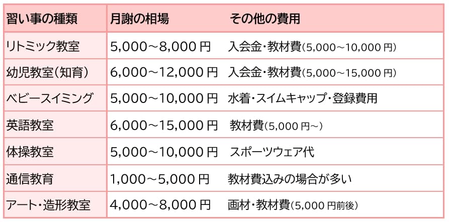 習い事の費用の相場