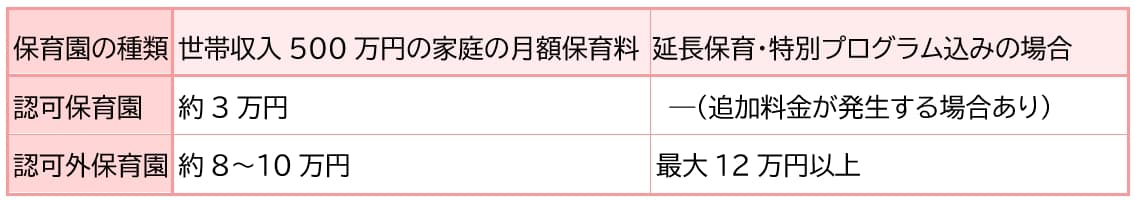 ここでは、それぞれの保育料と補助金制度について詳しく解説し、家計面での考慮ポイントをお伝えします。