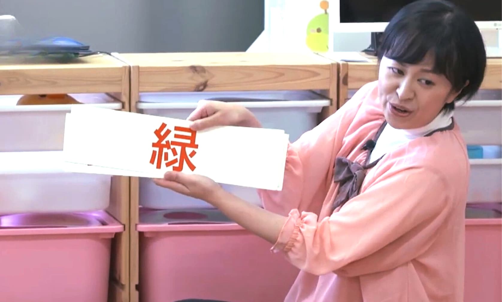 ベビーパークでも使っているフラッシュカード「リーディングカード」は、大きくて見やすい文字を用いたカードを見せながら、言葉を耳で聞くだけでなく、「目」からも言語の習得を促していきます。