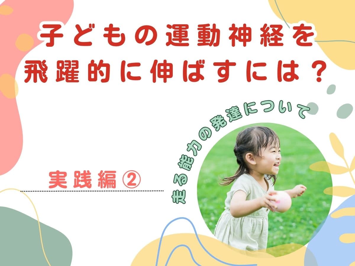 コラムNo.132「子どもの運動神経を飛躍的に伸ばすには?~実践編①:ぶら下がりから直立歩行まで~」に引き続き、子どもをより高度な運動へ導く、具体的プログラムをご紹介します。前回までのプログラムにきちんと到達できるようになってから取り組みましょう。
