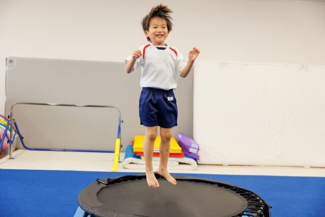 体全体を使う運動で、エネルギーを発散させ、衝動的な行動を抑える助けになります。 - トランポリン