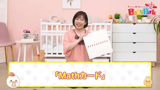幼児教室ベビーパークでは、Mathリーディングを実践するために「mathカード」を活用しています。数量が書かれたカードを使って視覚的に数と量の関係を捉える練習を行います。