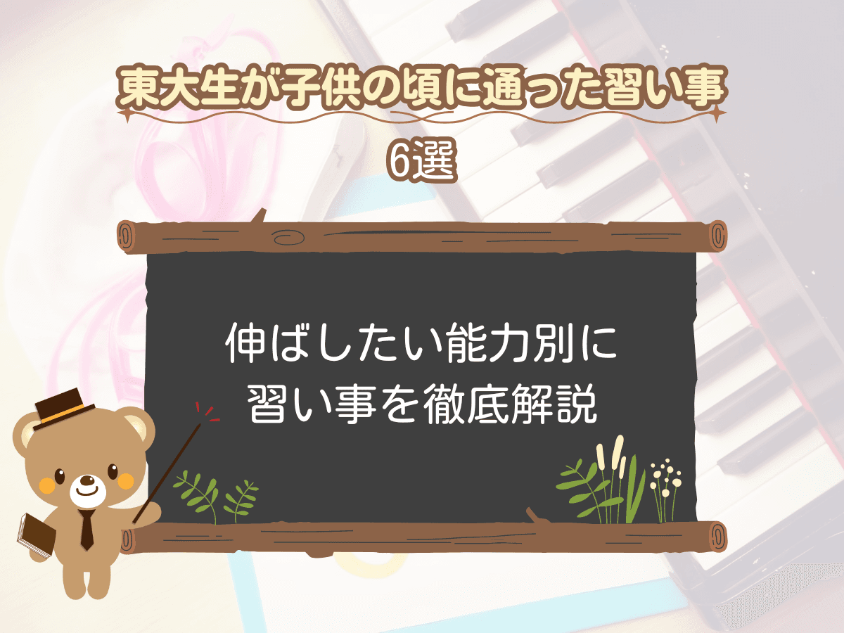 特に、スイミング、幼児教室、ピアノ、英会話、体操、そろばんの6つの習い事は、東大生の幼少期の習い事として人気が高いです。