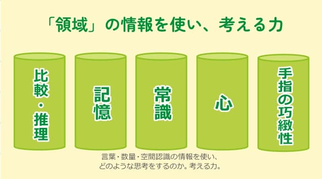 トイズアカデミージュニアでは、記憶力の向上に直結する「記憶・数・言語」のトレーニングに加え、「推理・図形・知識・巧緻性・リスニング」といった要素をバランスよく育てるカリキュラムを提供しています。