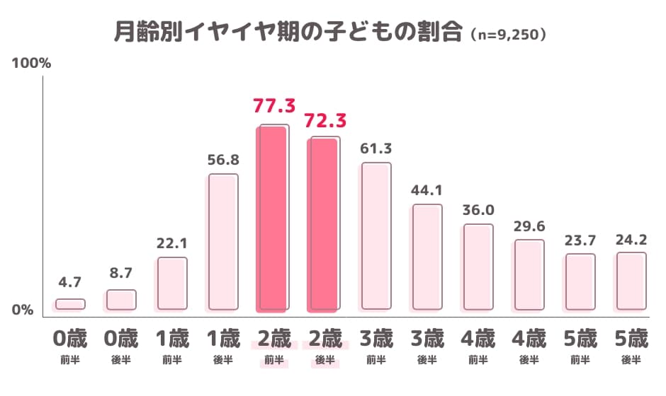 実際、文部科学省が発表しているデータでも、「子どもが言うことを聞かない」ことを負担に思っている親が、2歳児では約22%・3歳児では約27%に達していることが報告されており、イヤイヤ期に悩まされている親が多い実状がうかがえます。[注2]