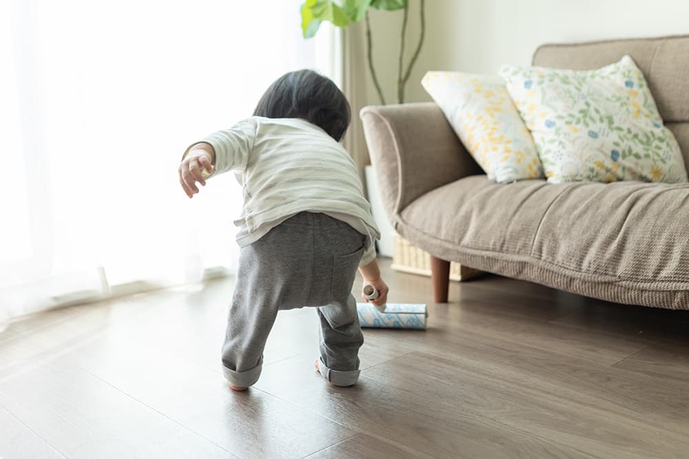 つかまり立ちを始めるこの時期には、手押し車がおすすめです。