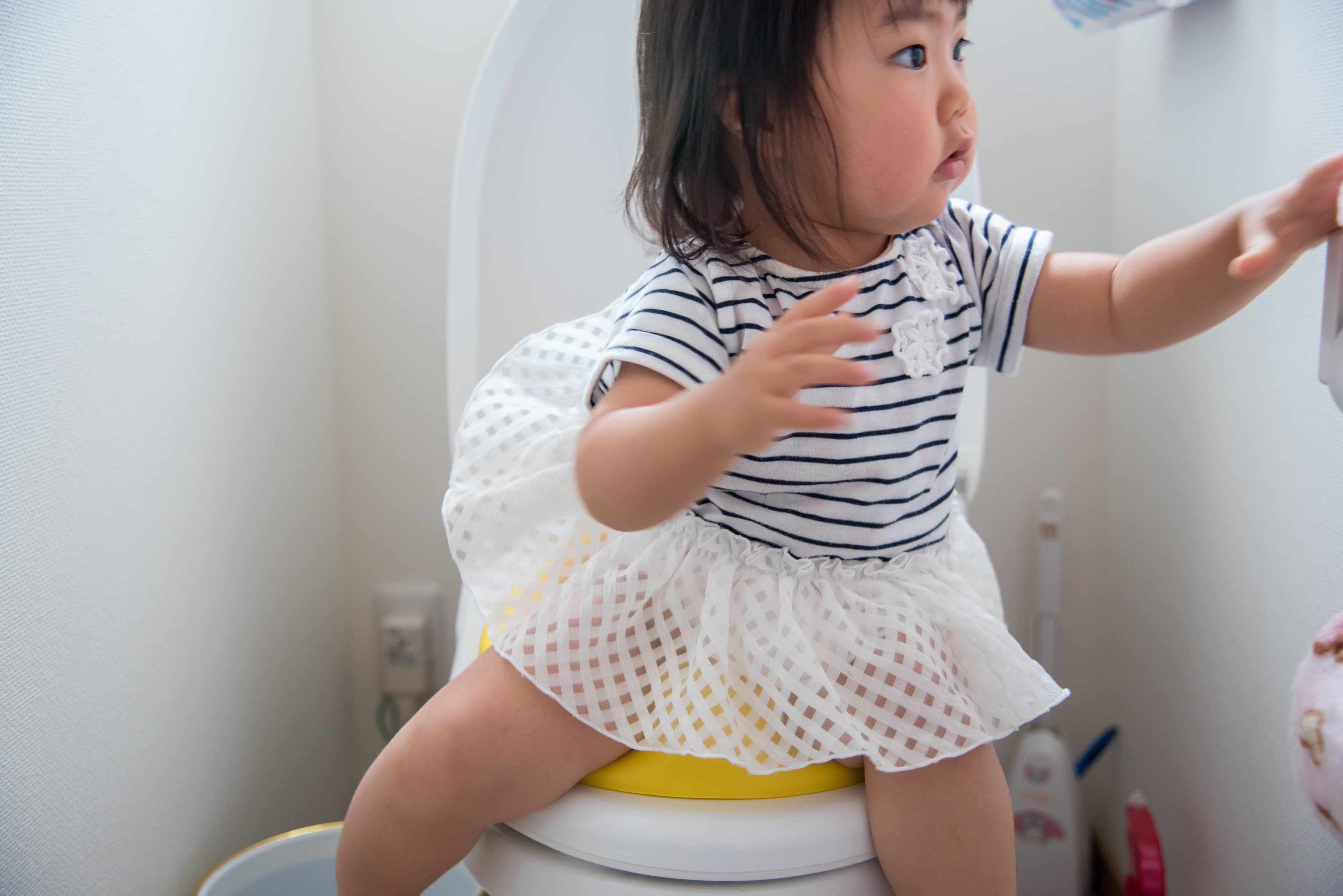 そのためには、おしっこが出そうになったら出る前に教えてくれたり、夜間に長時間オムツが濡れなくなったりなど、十分にオムツ外しの準備ができていることを確認してください。