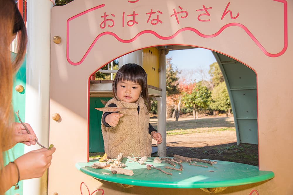 一緒にごっこ遊びをする中で、シチュエーション毎にいろいろな挨拶を取り入れてみましょう。
