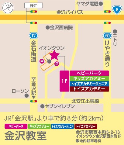 | 〒920-0025 石川県金沢市駅西本町5-2-13 イオンタウン金沢駅西本町 1F |