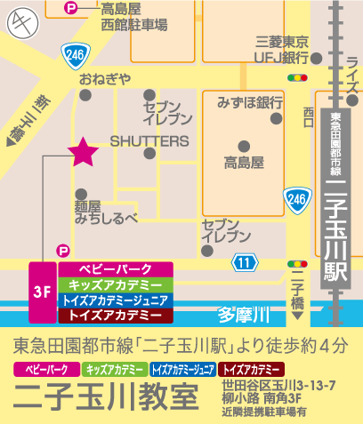 | 〒158-0094 東京都世田谷区玉川3-13-7 柳小路 南角 3F |
