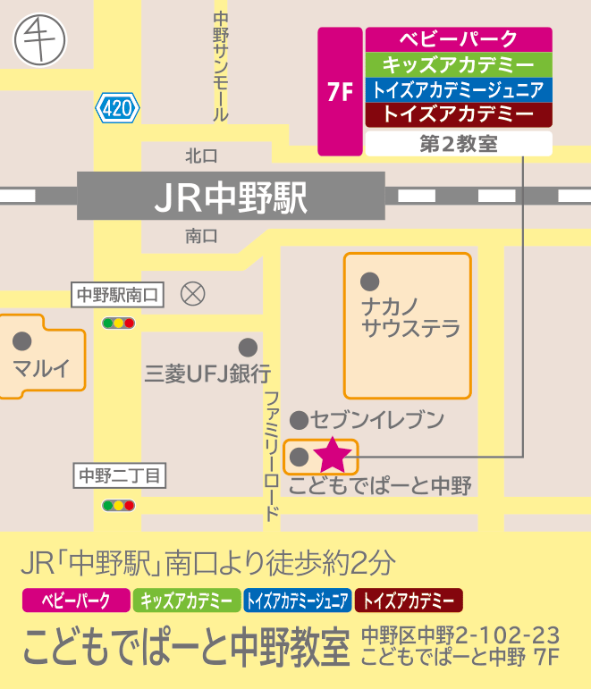 | 〒164-0001 東京都中野区中野2-26-11 こどもでぱーと中野 7F |