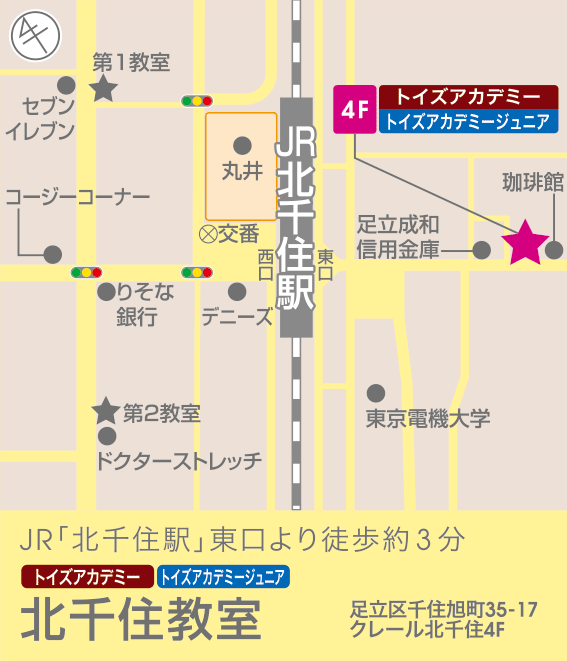 | 〒120-0026 東京都足立区千住旭町35-17 クレール北千住 4F |