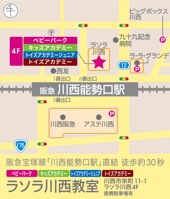 阪急宝塚線 川西能勢口駅 直結 徒歩約30秒 |