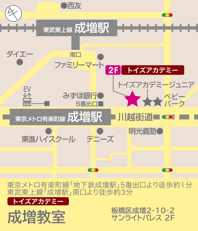 東京メトロ有楽町線 地下鉄成増駅 5番出口 徒歩約1分 東武東上線 成増駅 南口より 徒歩約3分 |