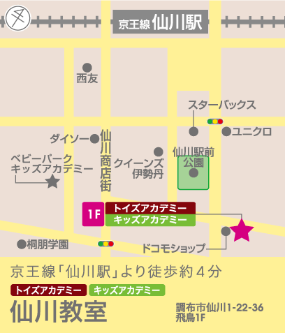 | 〒182-0002 東京都調布市仙川町1丁目22-36 飛鳥 1F |