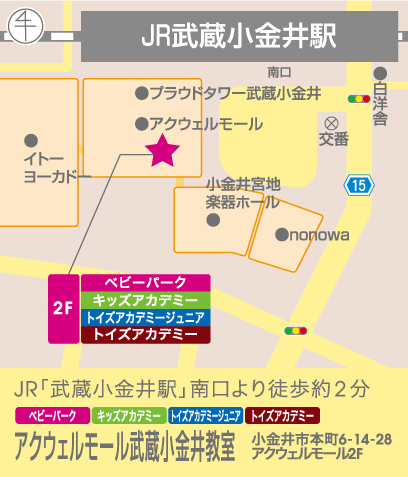 電車でお越しの方 JR武蔵小金井駅南口より 徒歩約2分 車でお越しの方 施設内に駐車場がございます ※有料 |