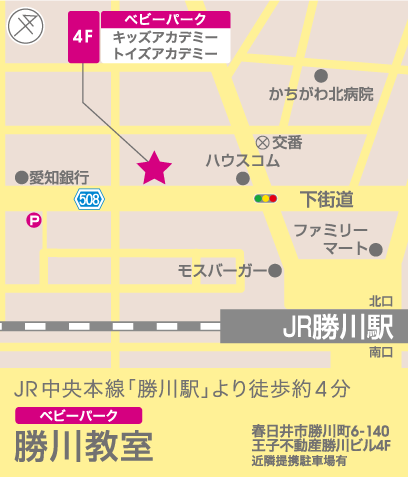 | 〒486-0945 愛知県春日井市勝川町6-140 王子不動産勝川ビル 4F |
