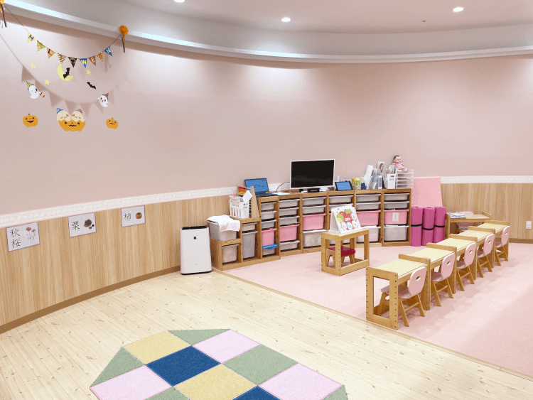 ベビーカーの置き場所はベビーパーク教室内に4台まで、そのまま置くことができます。